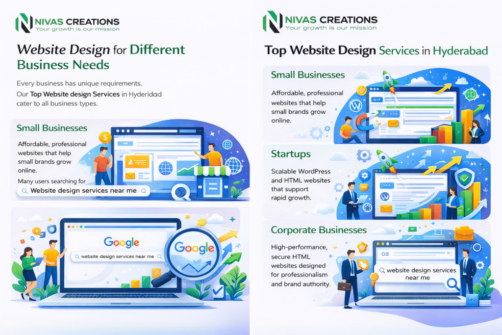 Affordable, professional websites that help small brands grow online. Many users searching for Website design services near me find Nivas Creations as their trusted partner.